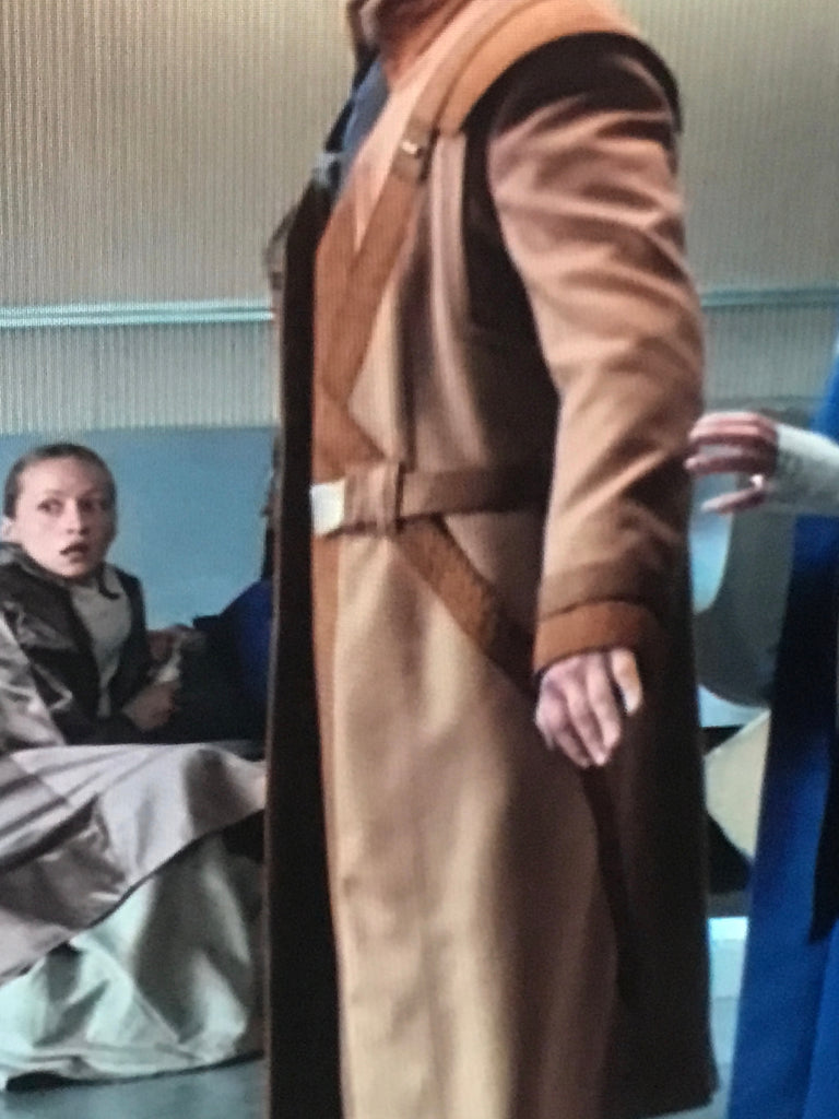 - Brown suede piping across the front torso in cross shape, and back torso (as per mock & references)