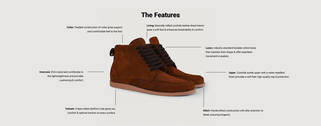 - Outsole: Crepe Rubber Platform Sole for comfort and traction