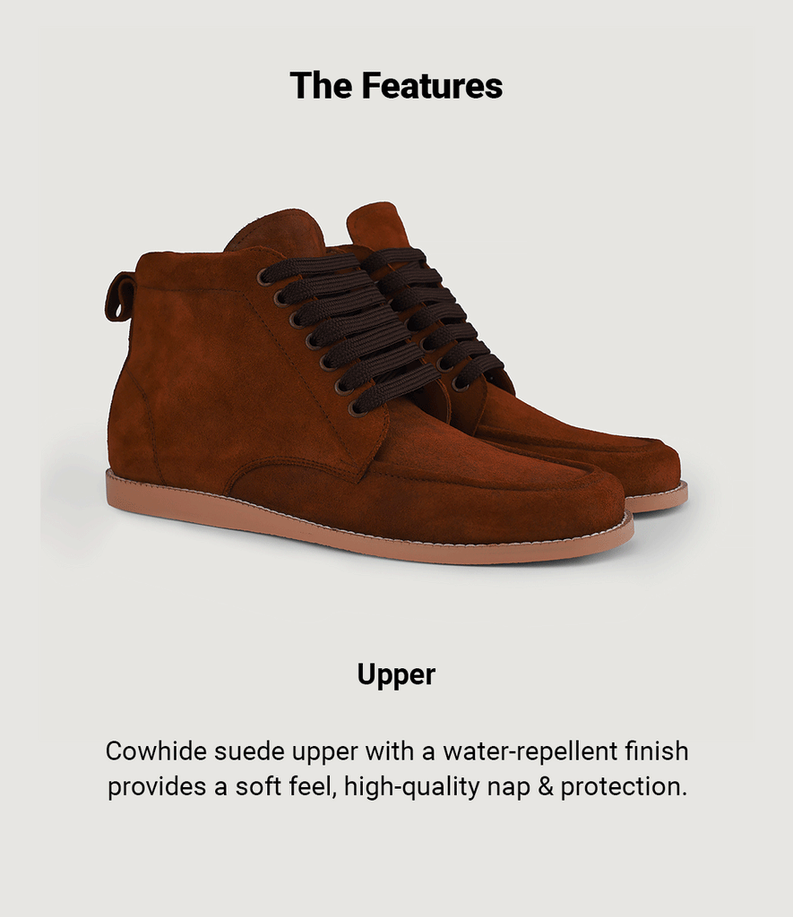 - Suede Cowhide Leather Upper (Durable Water Repellent Finish)