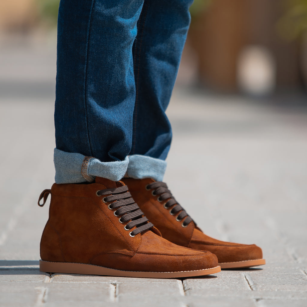 Bearman Moc Toe Brown Suede Boots