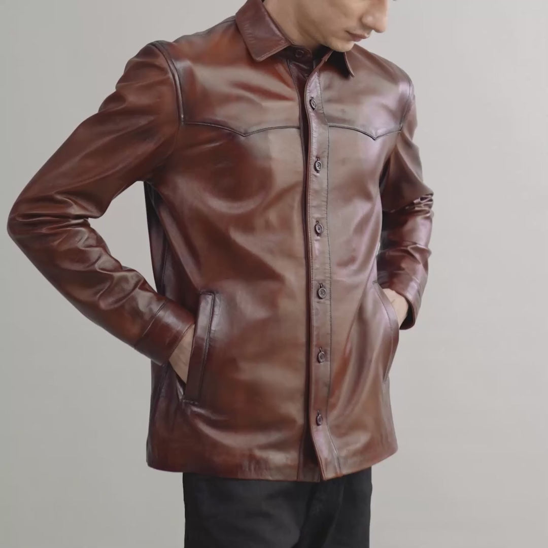 Bronco Distressed Brown Leather Shirt