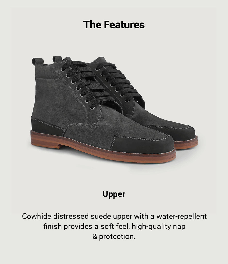 - Outsole: Crepe Rubber Sole for comfort and traction
