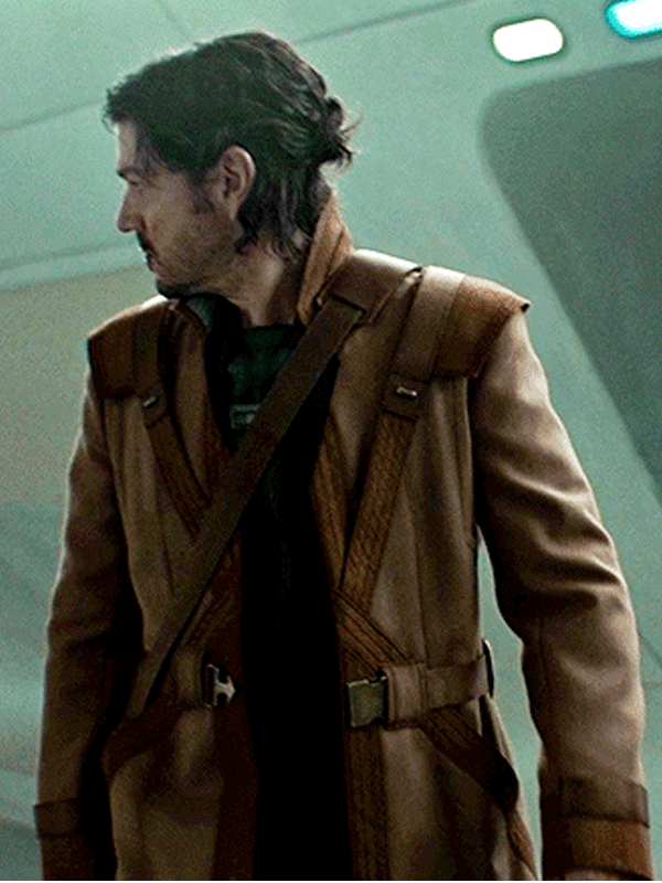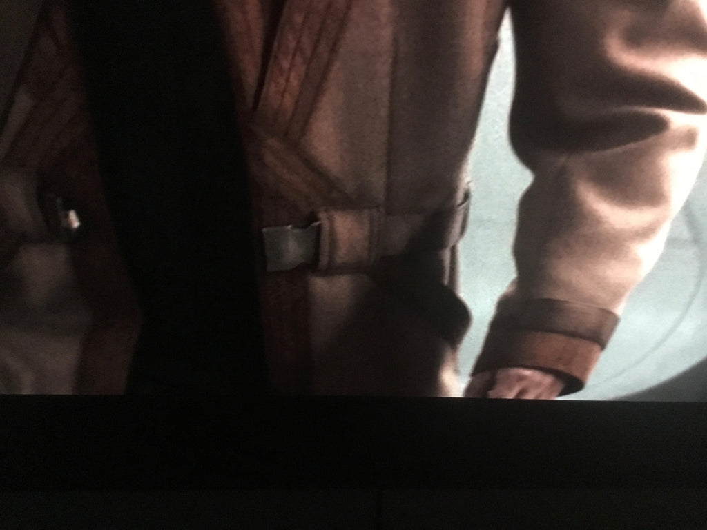 - Brown suede piping across the front torso in cross shape, and back torso (as per mock & references)