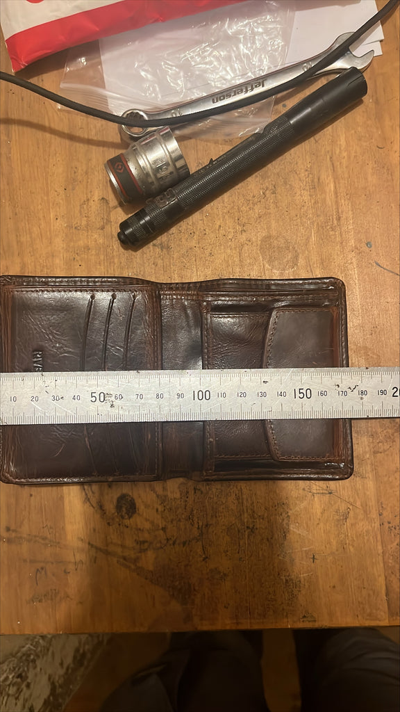 - Two cash compartments like a standard wallet accessed from the top (as per reference picture)