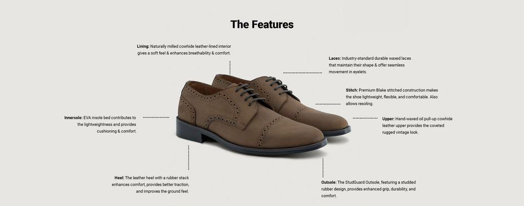 Dirk Brogues Derby Brown Oil Pullup Leather Shoes - StudGuard