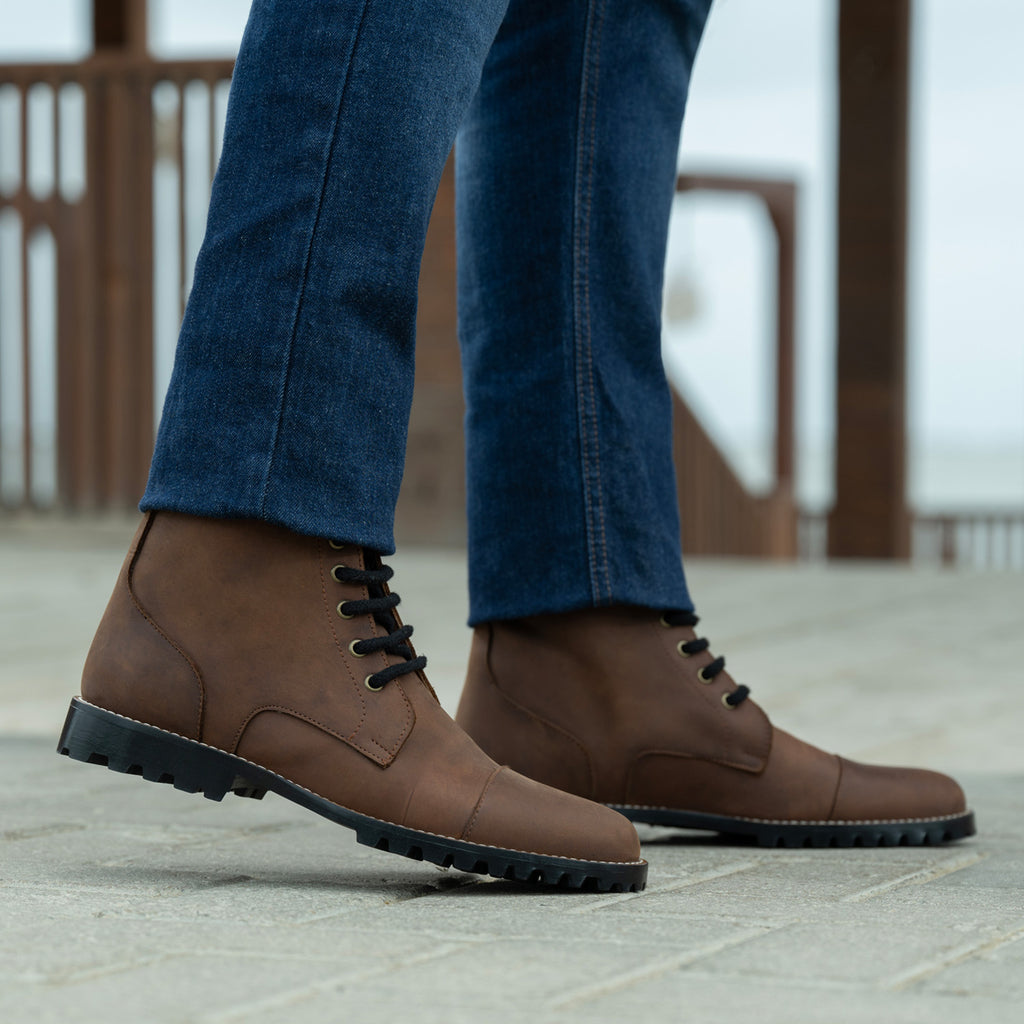 Knight Derby Waxed Brown Pullup Leather Boots - TerraGrip