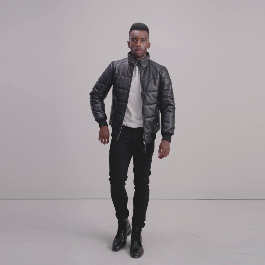 Lucas Black Leather Puffer Bomber Jacket