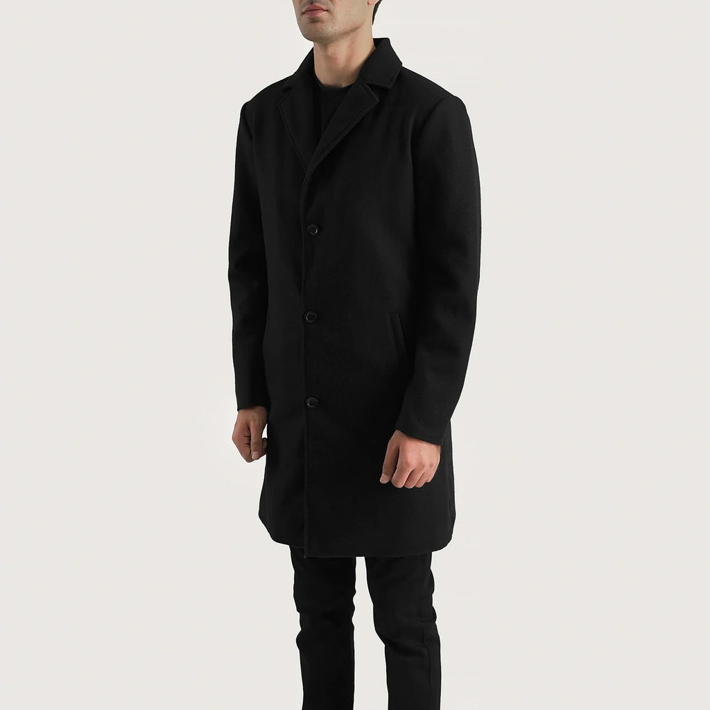 Petrillo Black Wool Single Breasted Coat