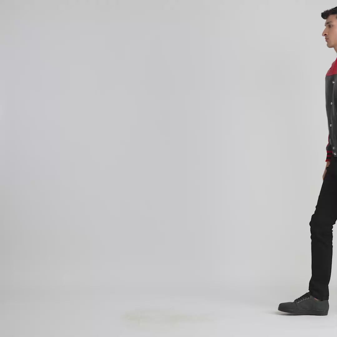 Terrance Black & Red Leather Varsity Jacket