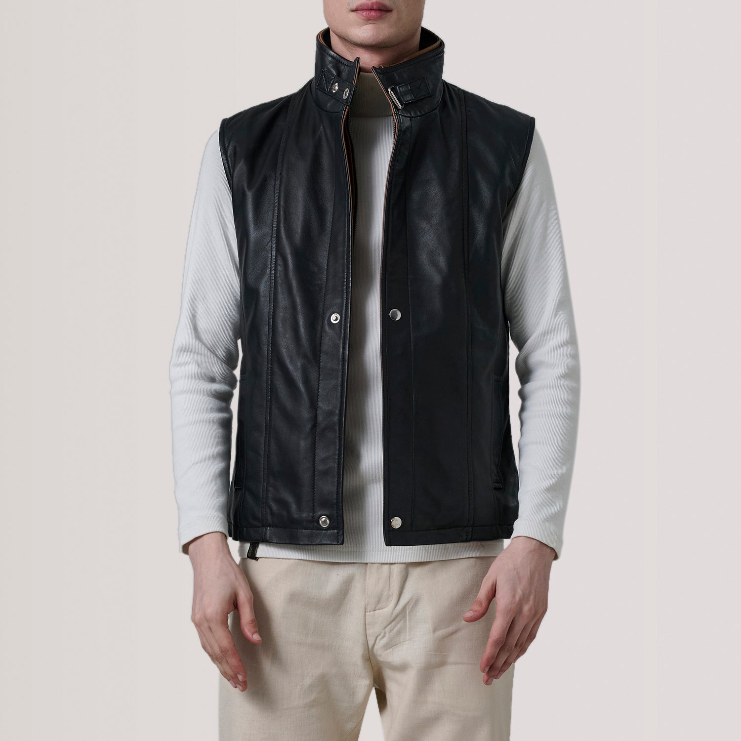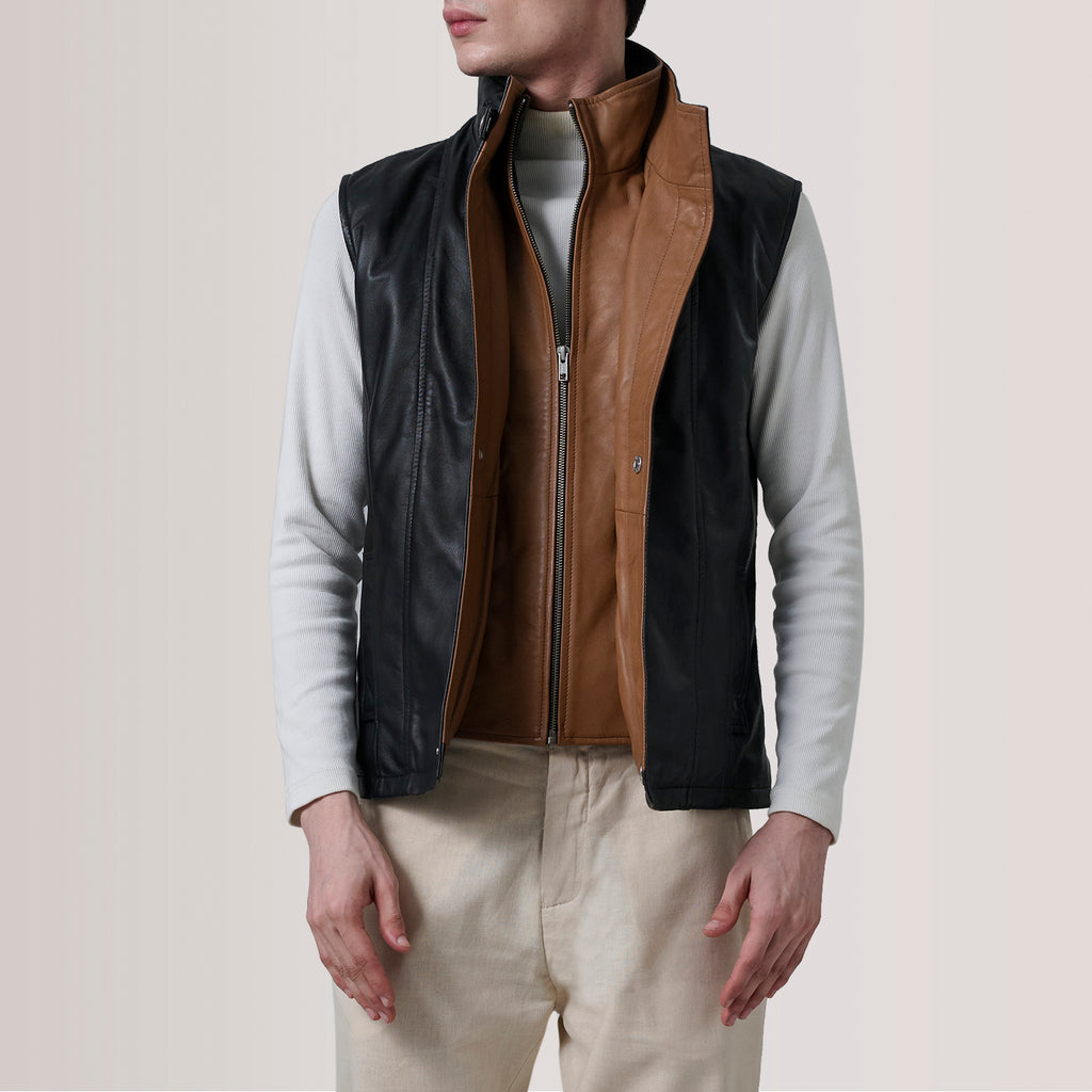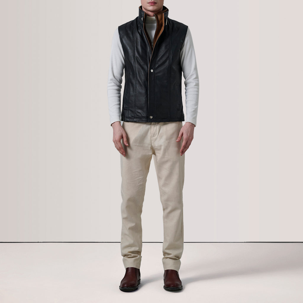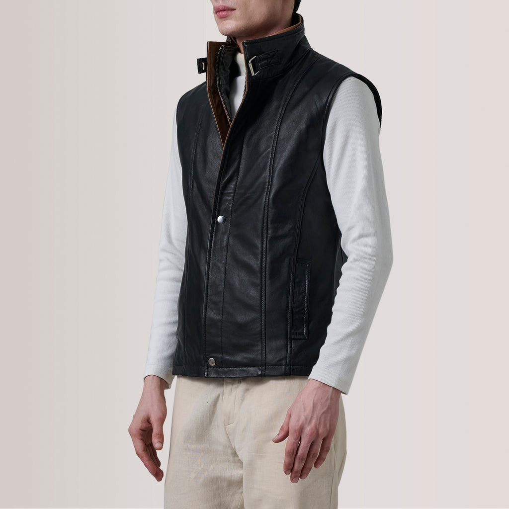 Zane Black Leather Vest